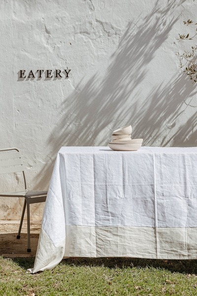 Elevate your table with the timeless elegance of Ivory Whisper, an oversized linen tablecloth in crisp white with a subtle oatmeal border. Perfect for both everyday dining and special gatherings, its generous 2m x 4m size allows for effortless layering or standalone styling. Crafted in limited edition batches, this piece brings understated sophistication and versatility to your table, creating a foundation for memorable meals and meaningful moments.